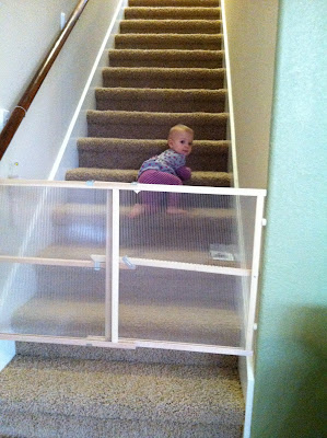 Made it under the gate to crawl up the stairs. That sneaky baby!